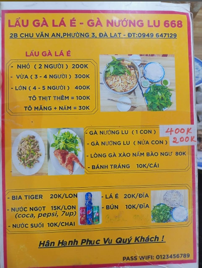 Lẩu gà lá é 668 - Gà Nướng Lu ngon uy tín tại chất lượng tại Đà Lạt · 2b Đường Chu Văn An, Phườn