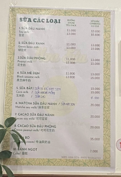 ' Quan hoa sua(권호아쓰어) ', 주소는 3F Duong Tang Bat Ho, P1, Thanh pho Da lat 으로 전에는 아침 일찍부터 저녁까지 일을 했었는데 가게가 넓어지고 판매시간은 오후 4시부터 밤까지로 조정이 된 것 같다. 달랏 시장 가까운 골목에 자리잡고 있어 시장을 둘러보다가 걸어가 한잔 마시기 딱 좋은 위치이다.