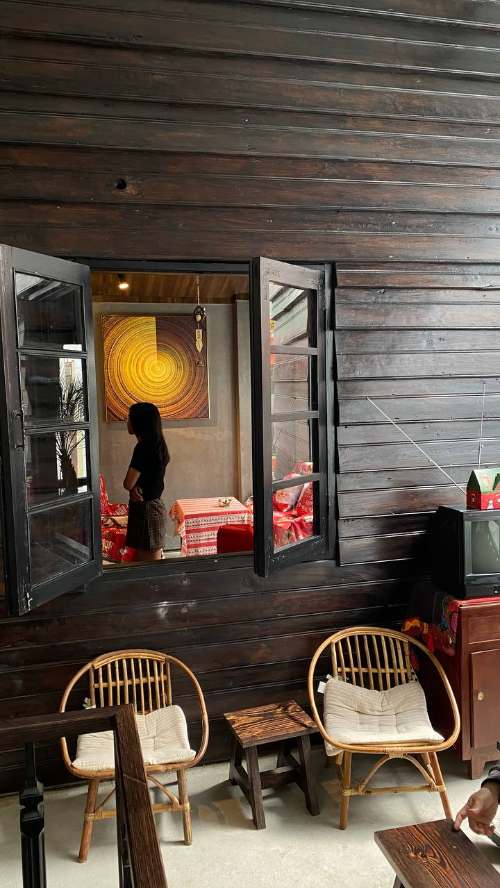 2층에 나무 계단으로 올라가면  작은 의자와 테이블, 편안한 라탄 의자, 그리고 방이 나오는데 베트남 친구들이 열심히 사진을 찍고 있어서 살짝만 나무창문 사이로 구경을 하고 돌아서 나온다.